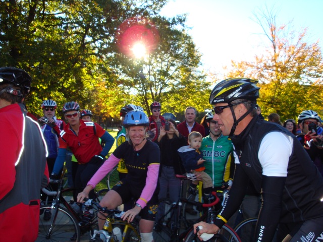 | Riding with Livestrong founder, Lance Armstrong, 2011 |